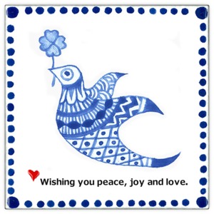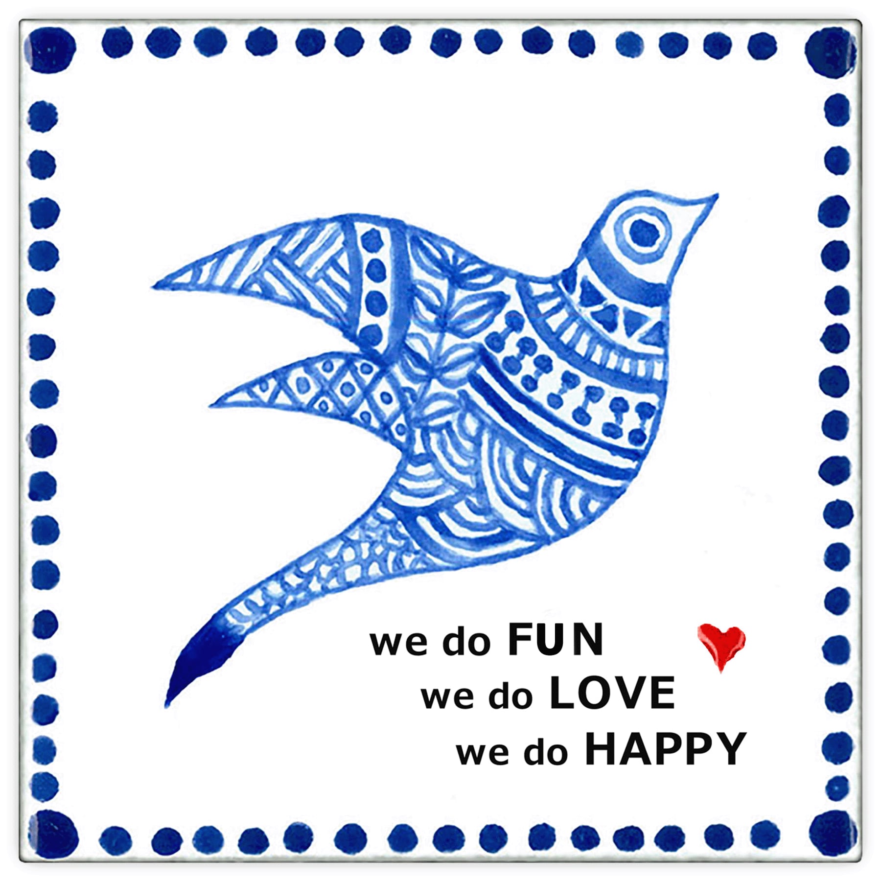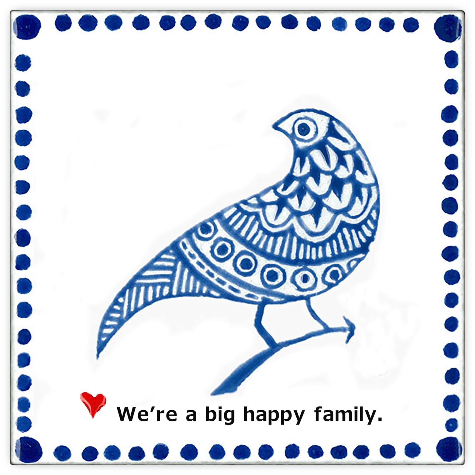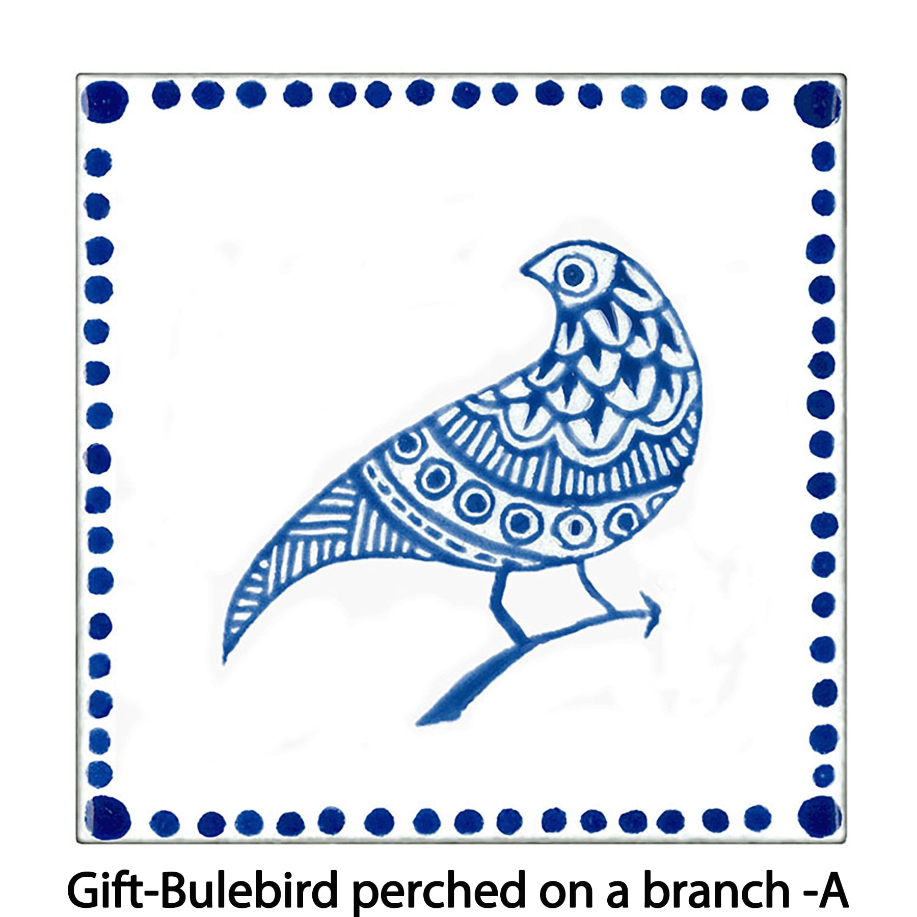 Our hand-painted tiles are unique art crafts that add color and charm to any space. They are suitable for both indoor and outdoor display and make perfect gifts. Messages can be purchased in the “Message” section. You can select from our suggested messages, or if you wish to add your own, you may include up to 36 characters (including spaces and punctuation). If you would like to add a frame, please purchase it in the “Frame” section. Inspired by Maurice Maeterlinck’s fairy tale “The Blue Bird,” this series conveys the message that “Happiness is often right beside us, yet we fail to notice it.”