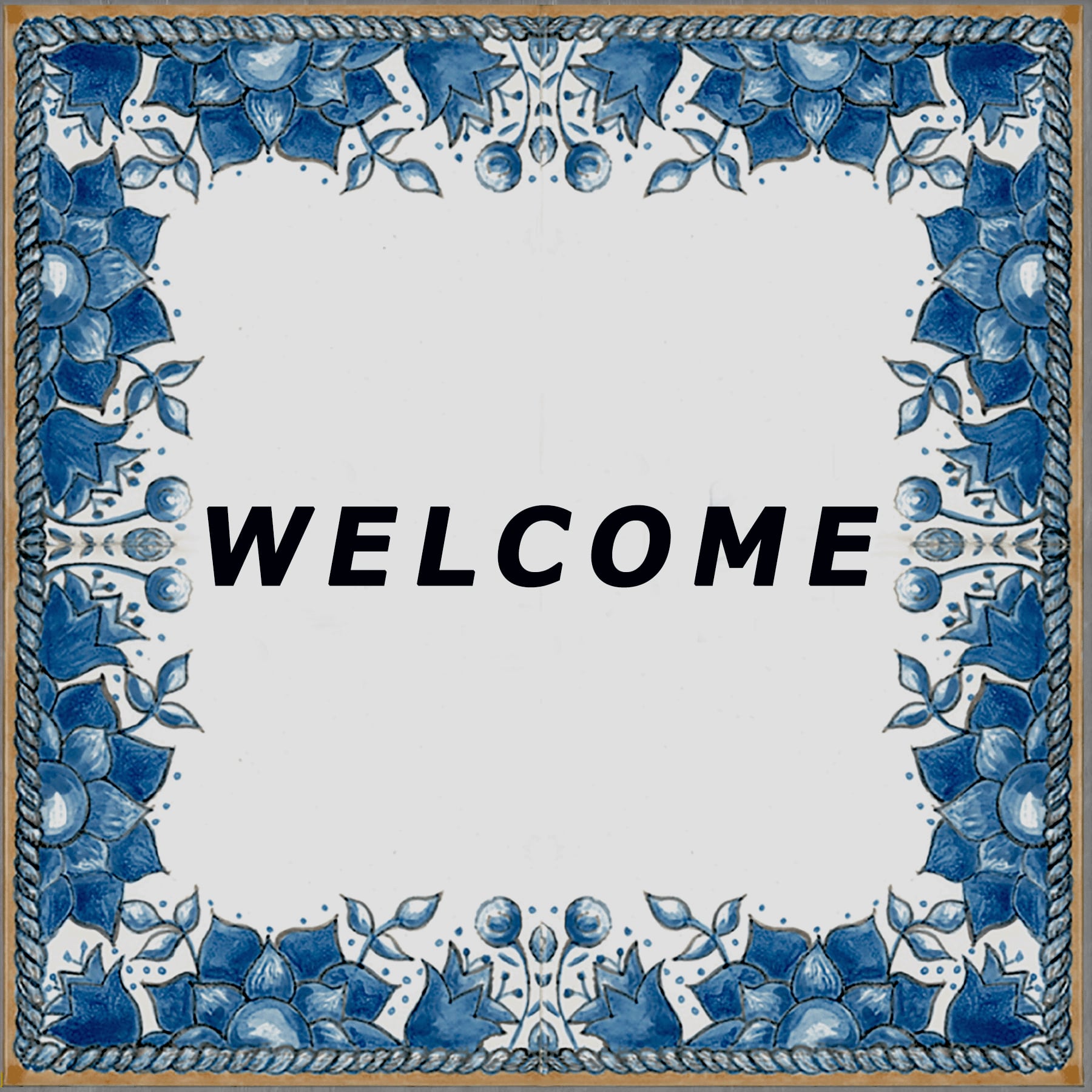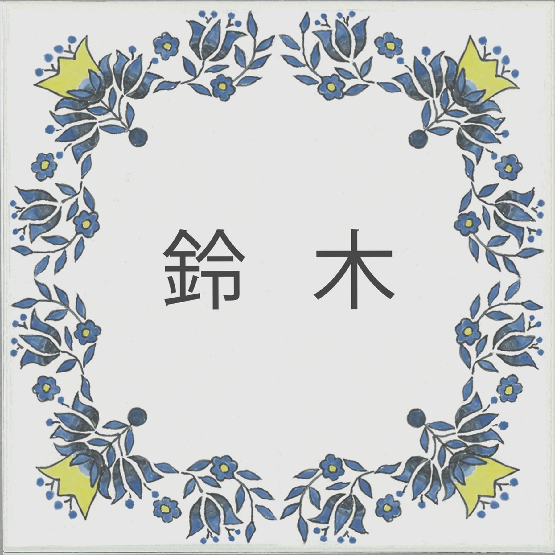 イタリアのマヨリカ焼きの陶板によく使われる花模様をデザインしました。青と黄色のコントラストがさわやかな雰囲気を表現しています。