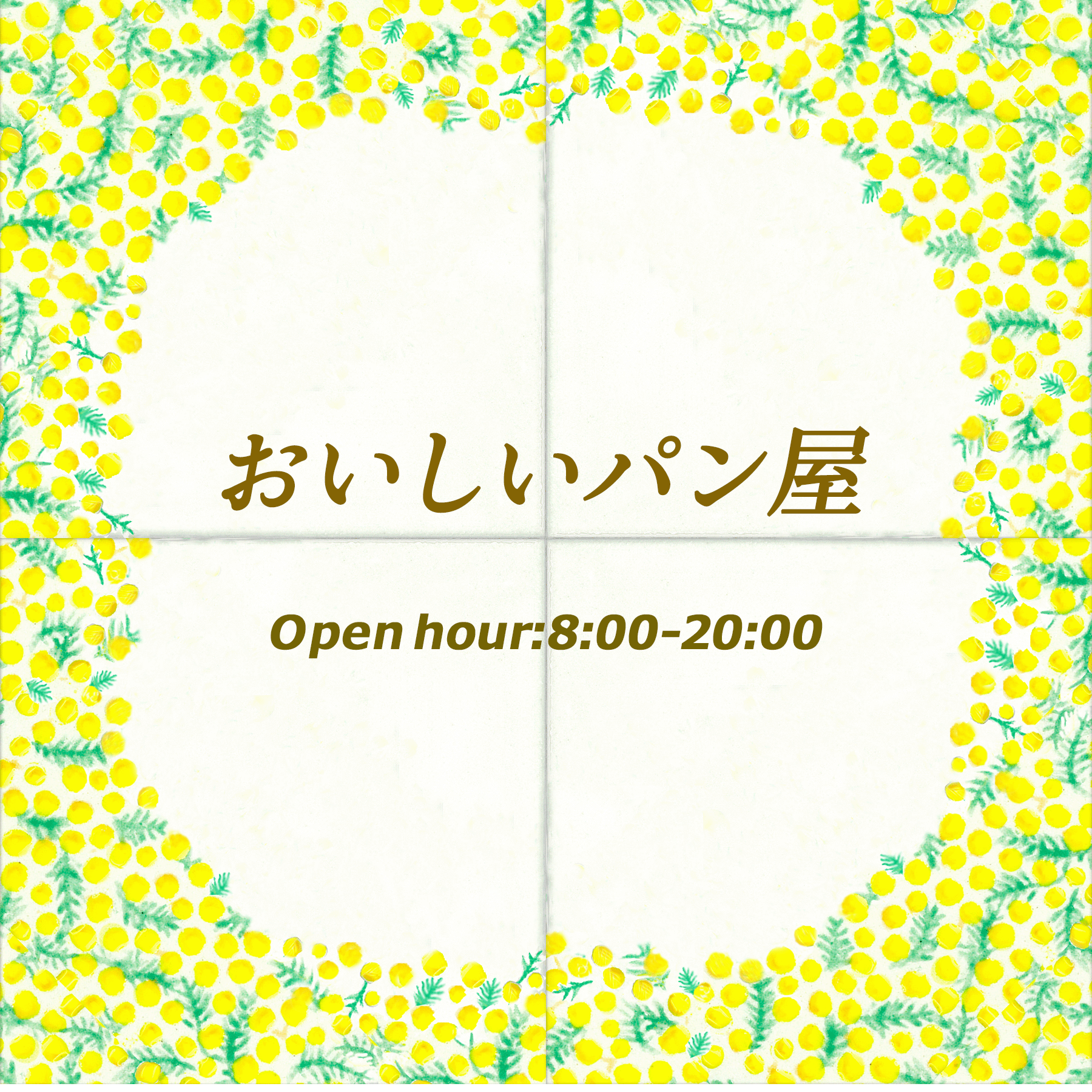 Mimosa, with its sweet fragrance and delicate blossoms, is known as the "yellow flower of happiness." The mimosa-patterned border creates a refreshing and elegant impression.