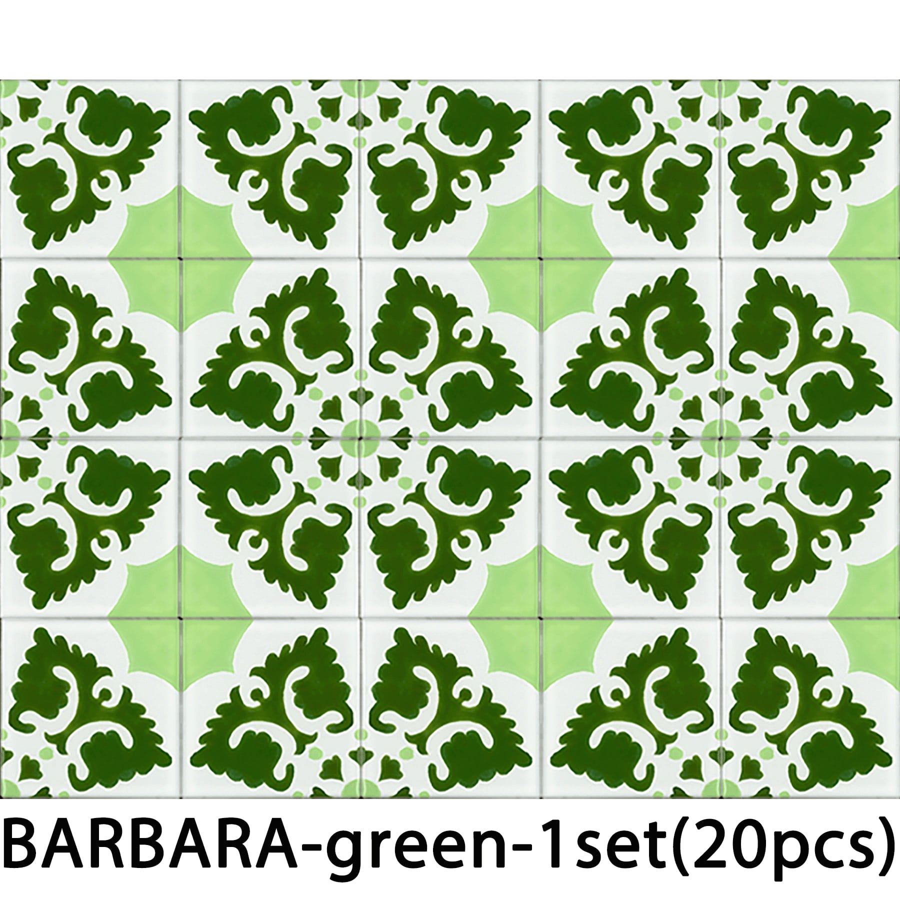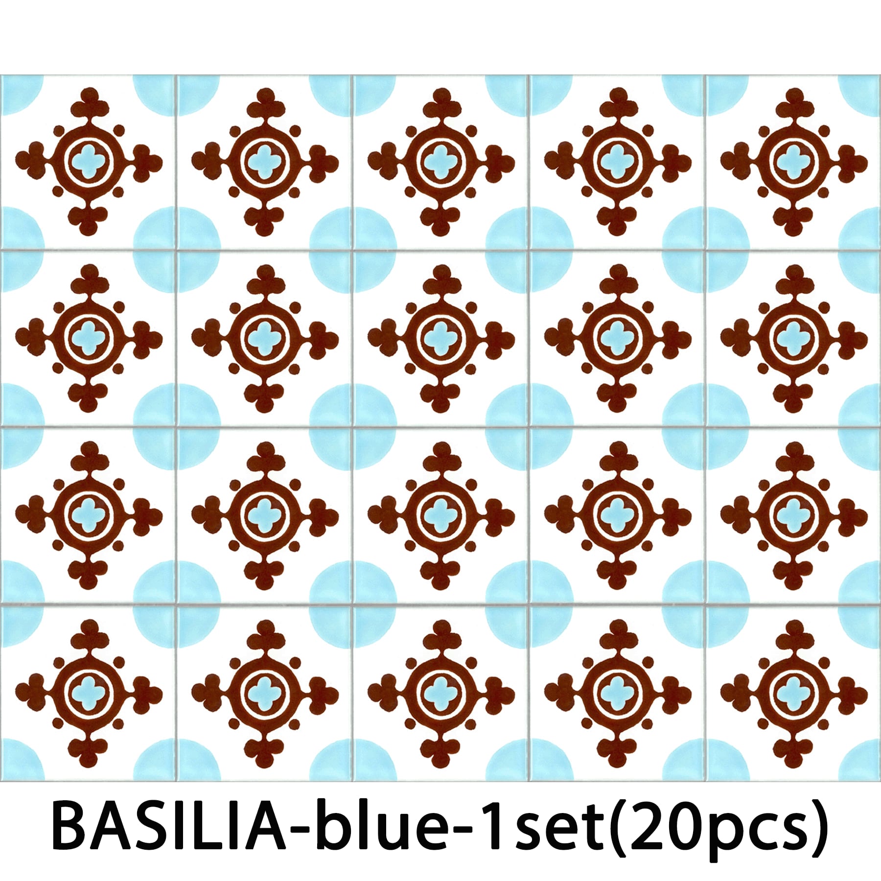 This is a 20-piece set of hand-painted pattern tiles. Please refer to each respective page for details on each pattern design. It is ideal for backsplash tiles, kitchen and bathroom decoration, wall art, and fireplace decoration.