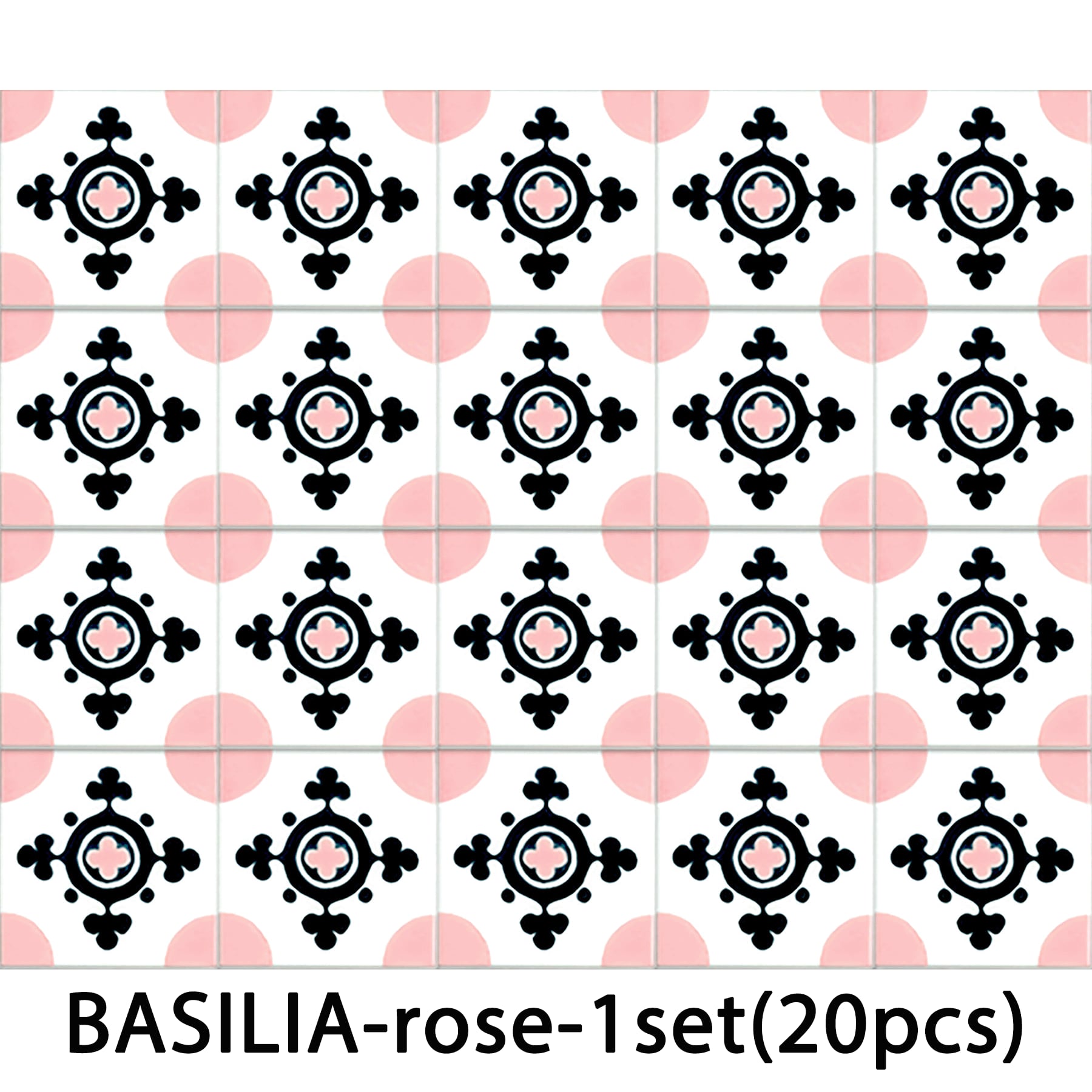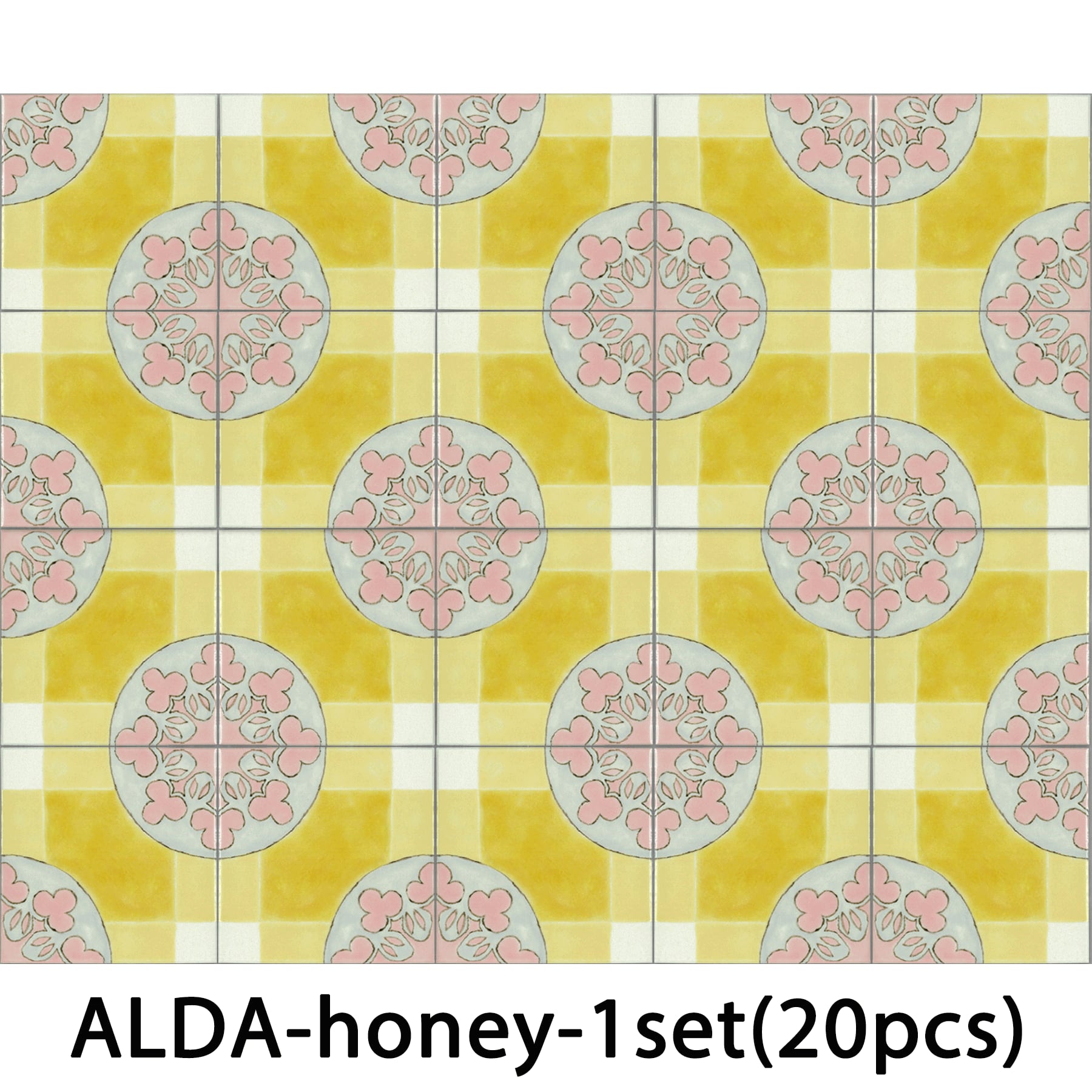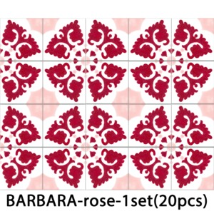 こちらは手描きのパターンタイル20枚セットです。各パターンデザインの詳細については、それぞれのページをご参照ください。バックスプラッシュタイル、キッチンやバスルームの装飾、壁面アート、暖炉の装飾に最適です。同色の無地タイルと組み合わせるのもおすすめです。セット販売は単品でご購入いただくよりもお得で、住宅や店舗の新築、リフォーム、改装に最適です。