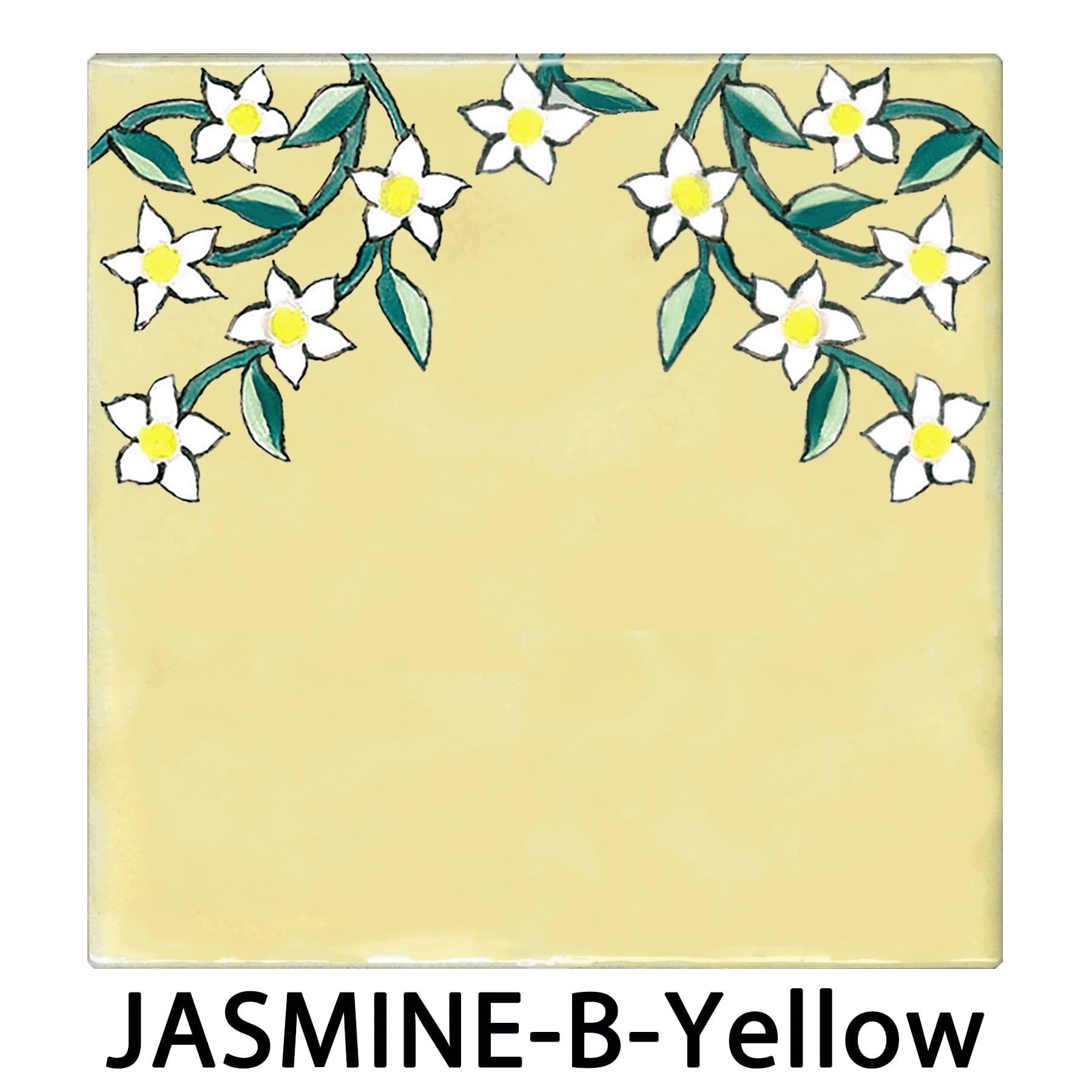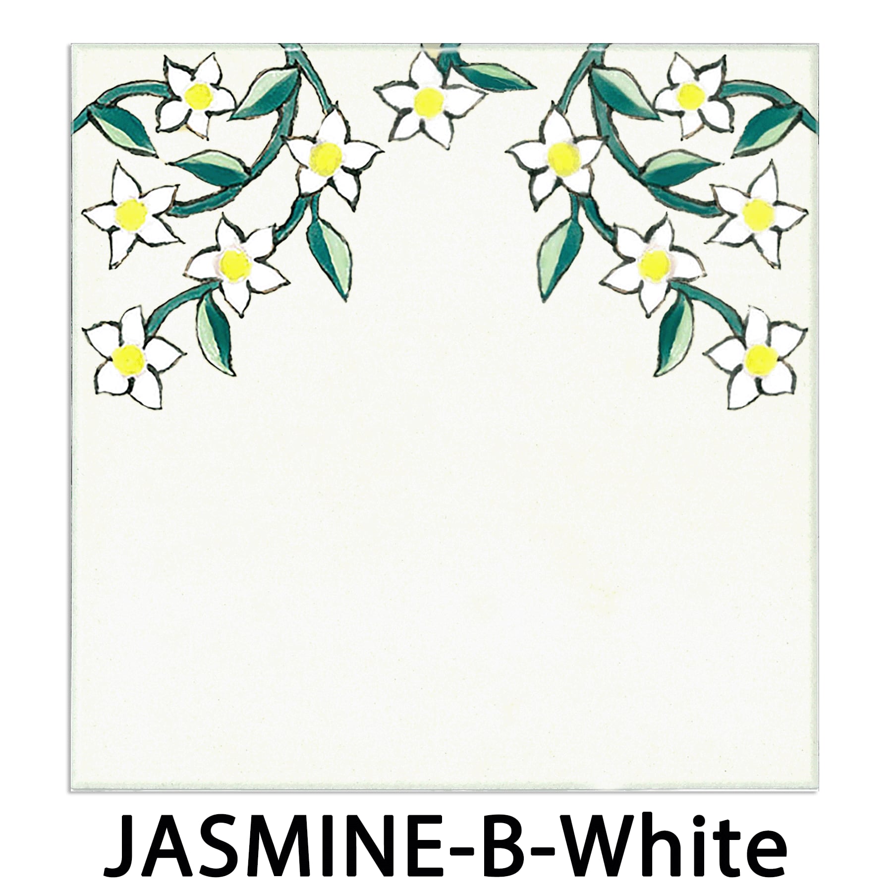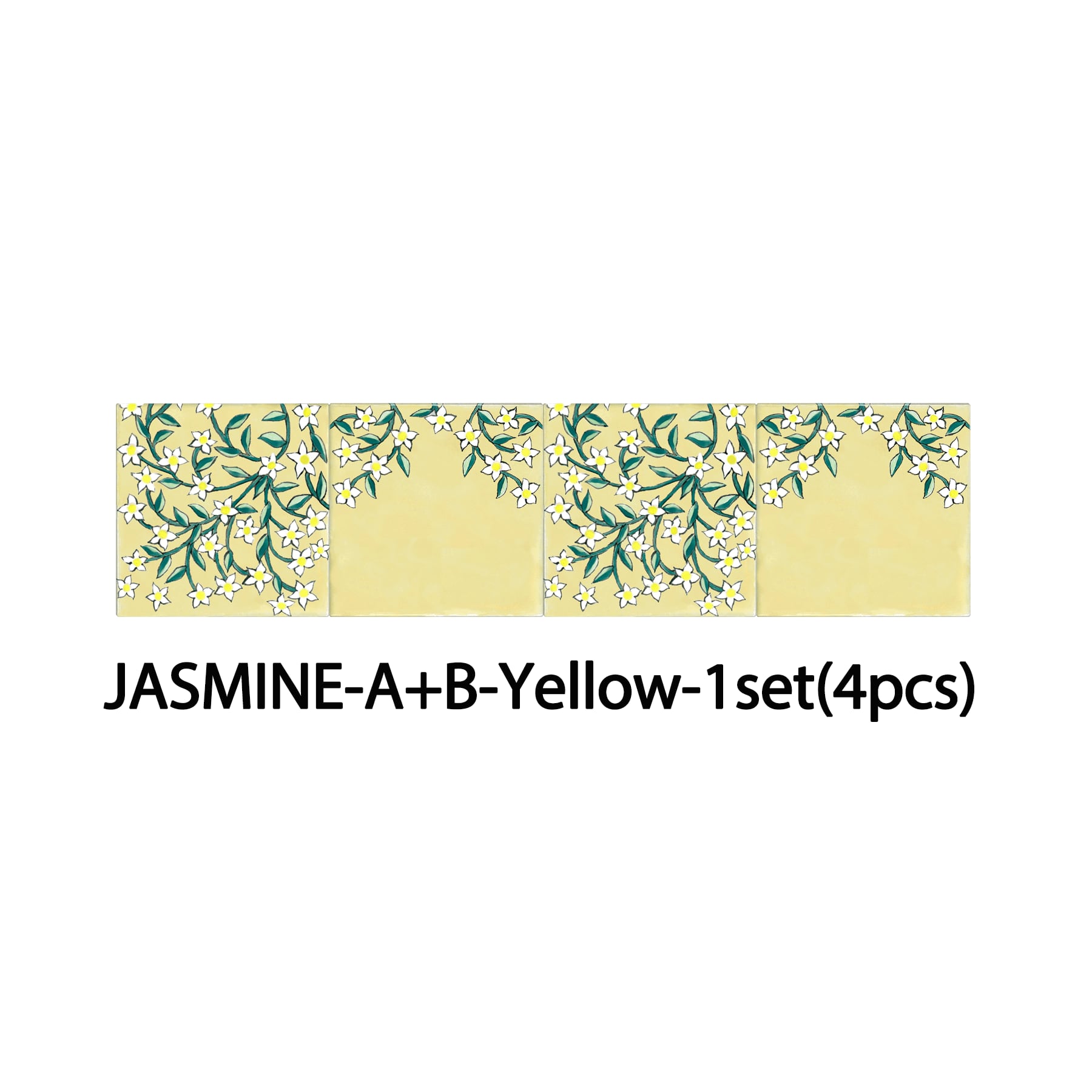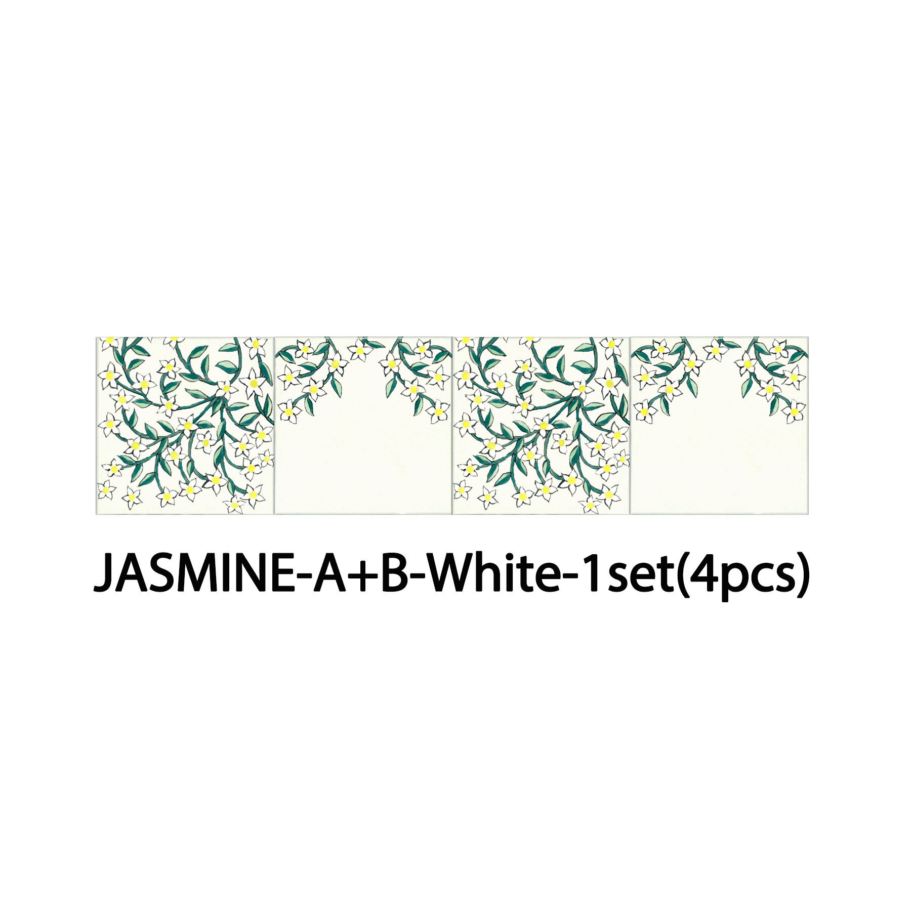 The flowing jasmine pattern along the border creates a fresh and graceful atmosphere.The design comes in two variations, and each set includes four tiles.