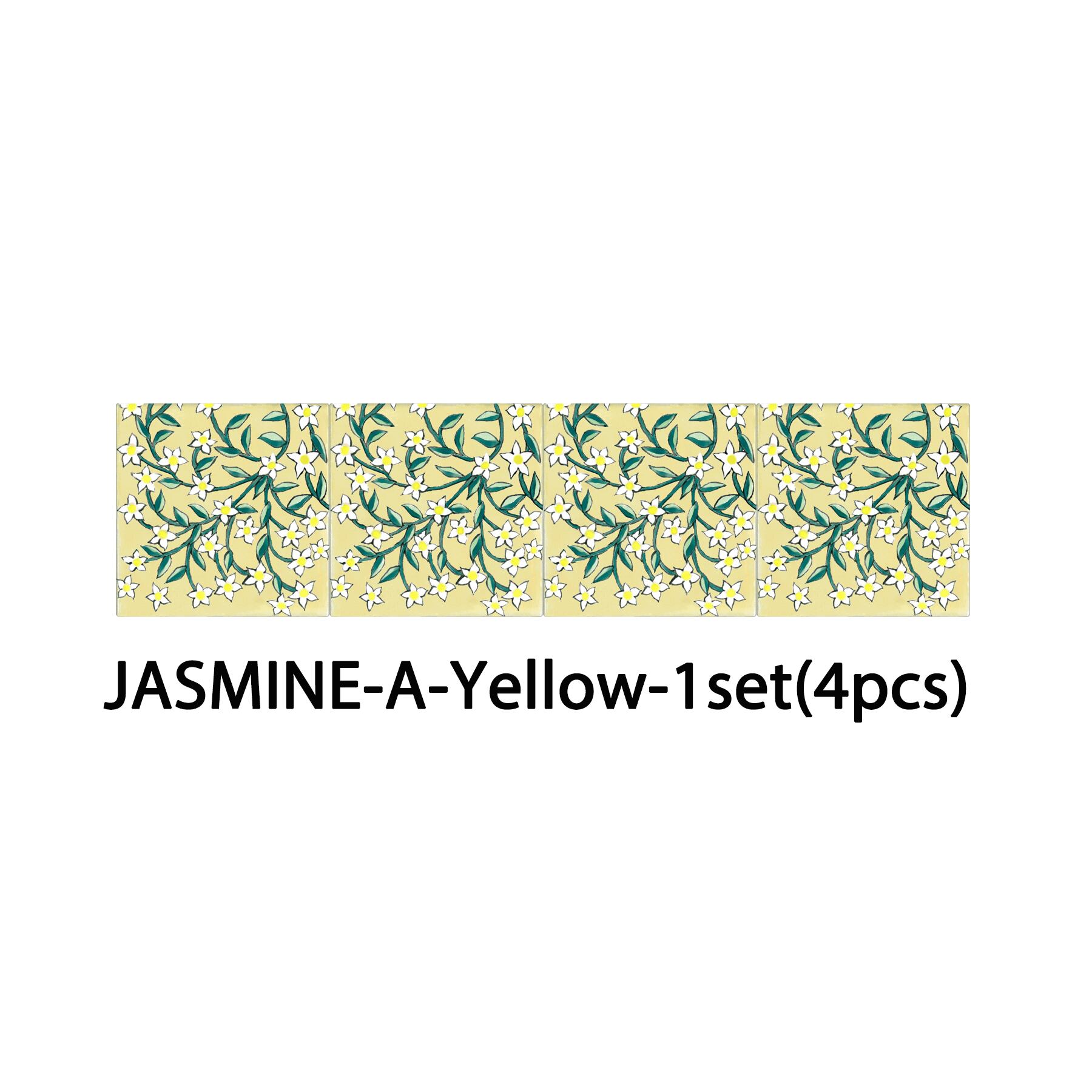 その流れるようなジャスミンの模様が、空間に爽やかで優雅な雰囲気をもたらします。デザインは2種類あり、1セットには4枚のタイルが含まれます。
