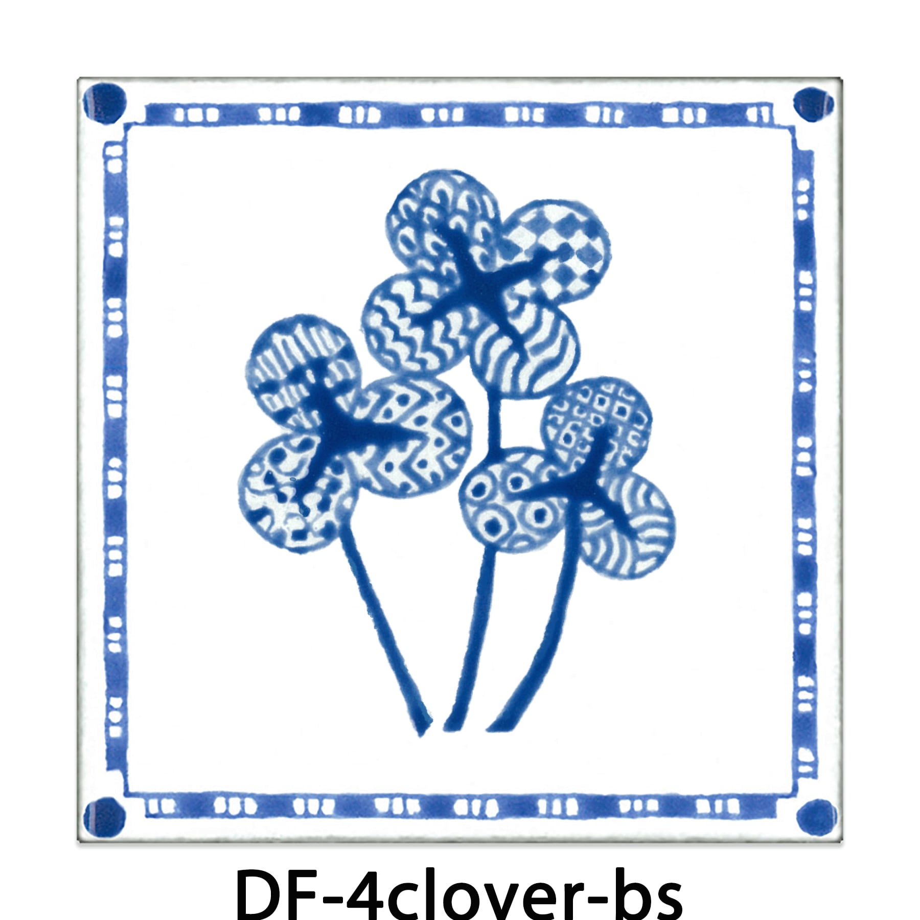 LUCKY CLOVER -四葉のクローバー【100×100mm】四葉のクローバーをデザインしたデルフト調のタイルです。