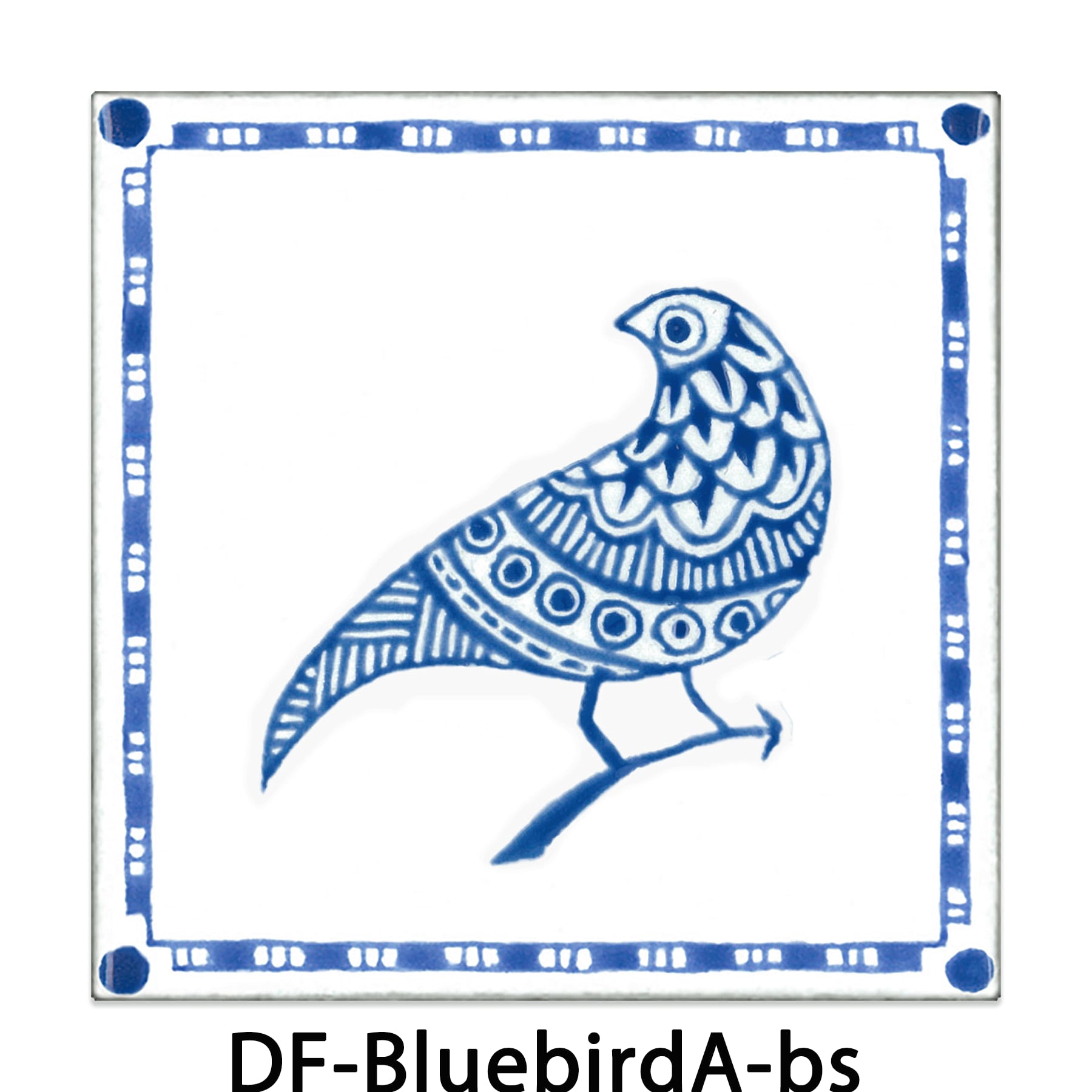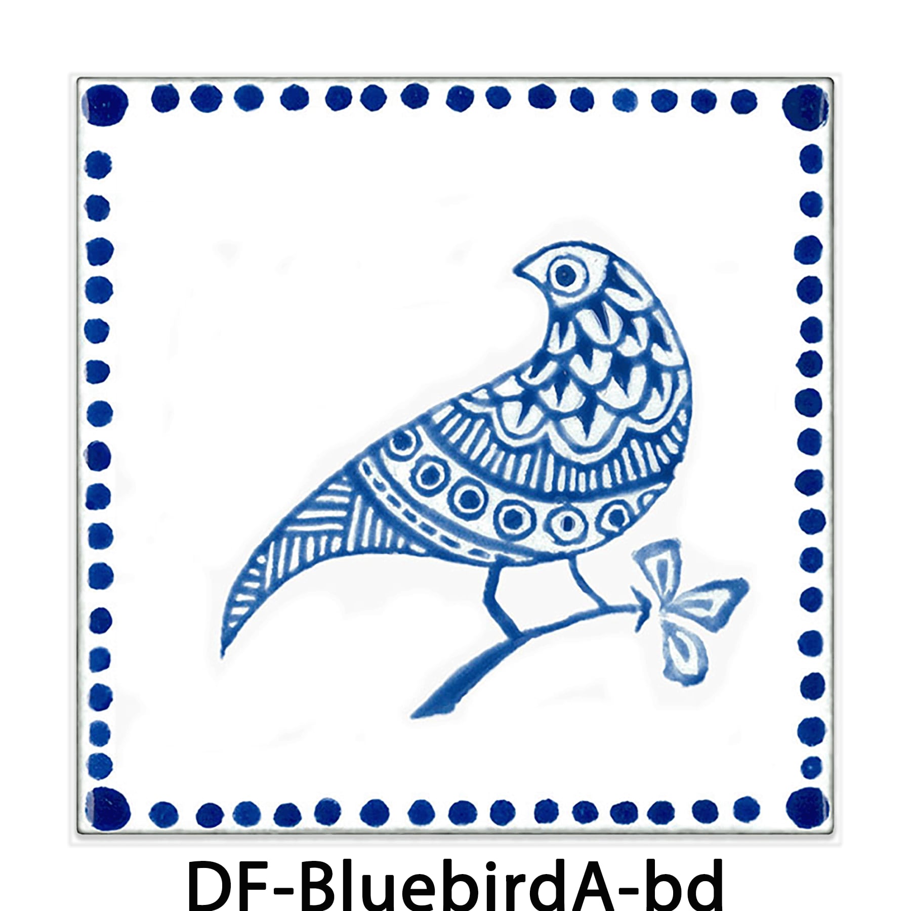 BLUEBIRD PERCHING ON A BRANCH-A - 枝にとまる青い鳥-A【100×100mm】