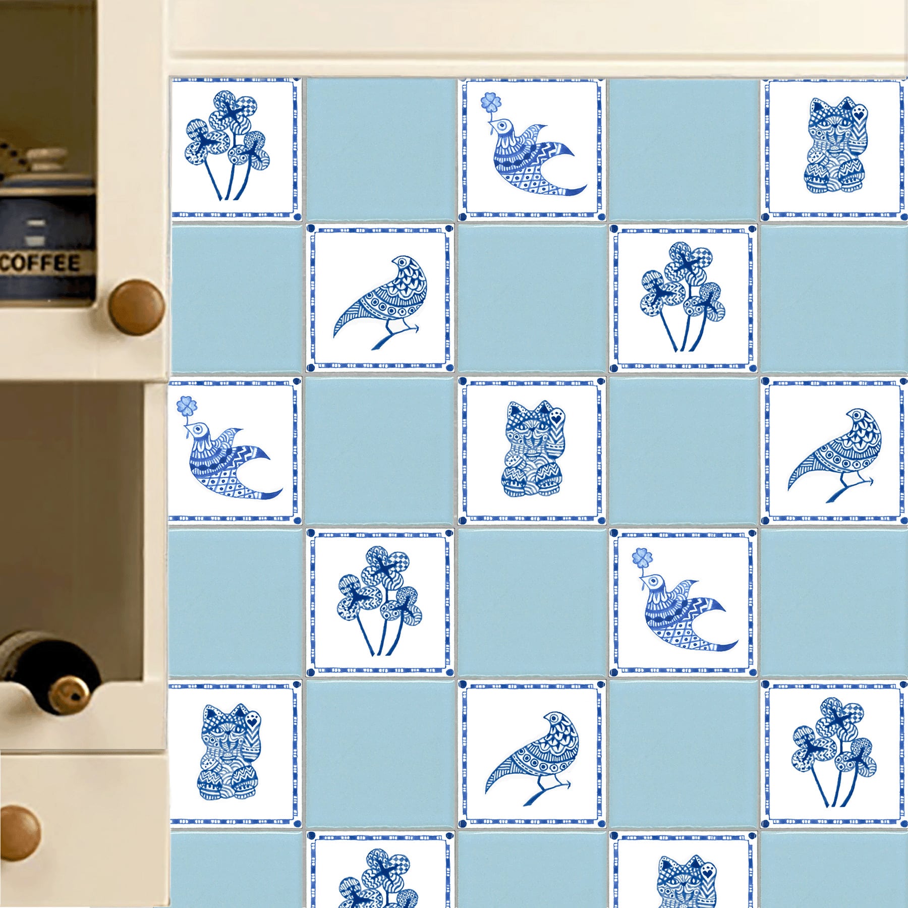 The edge of the tile has a frame or corner design like delft tiles. There are four types of tile edge border and corner designs.