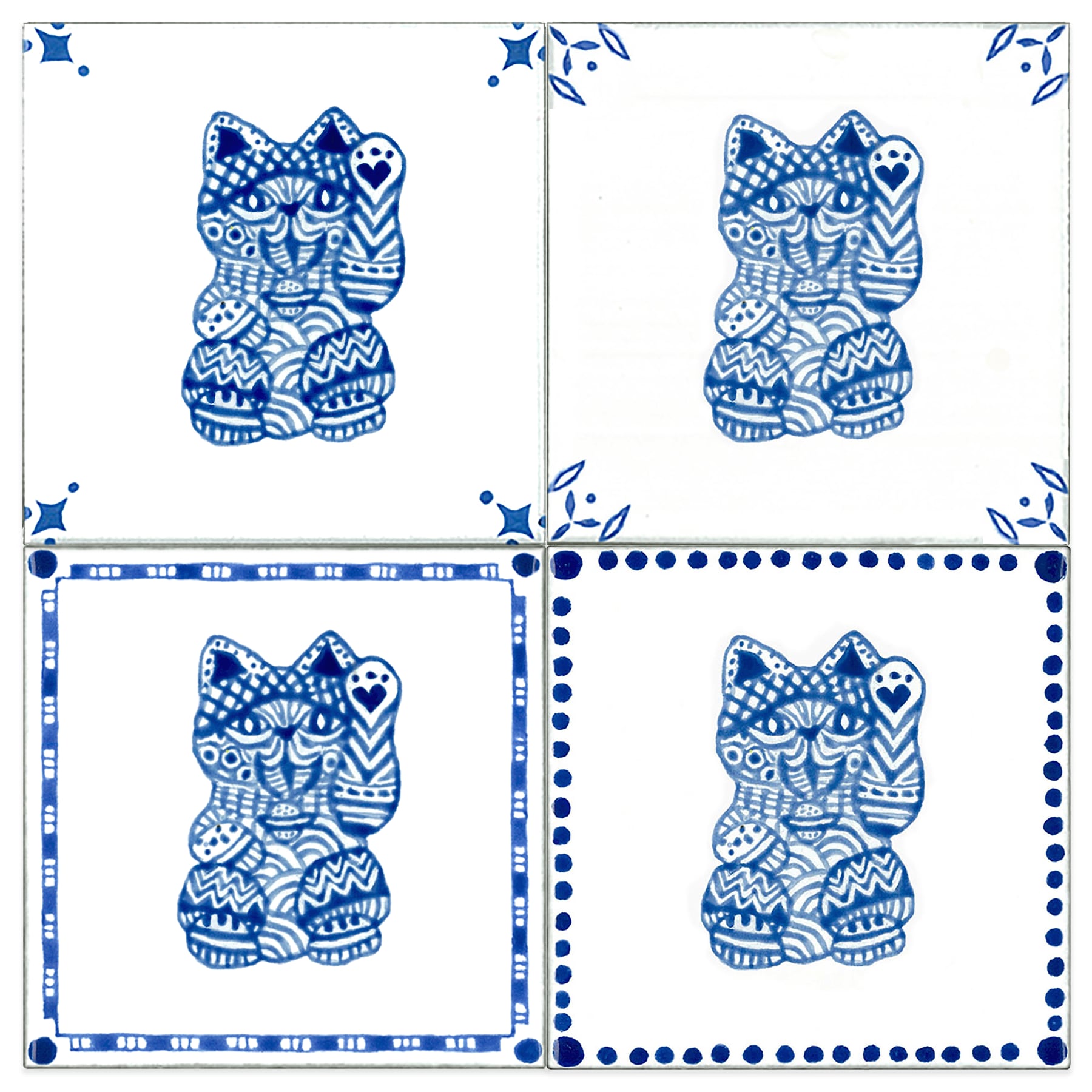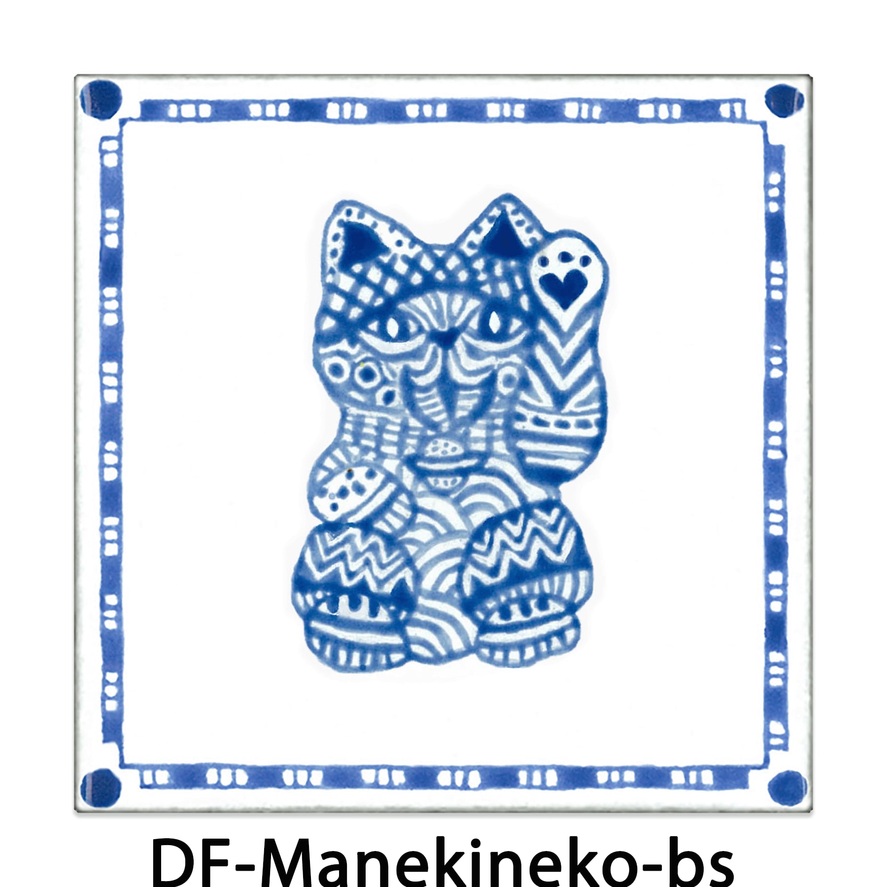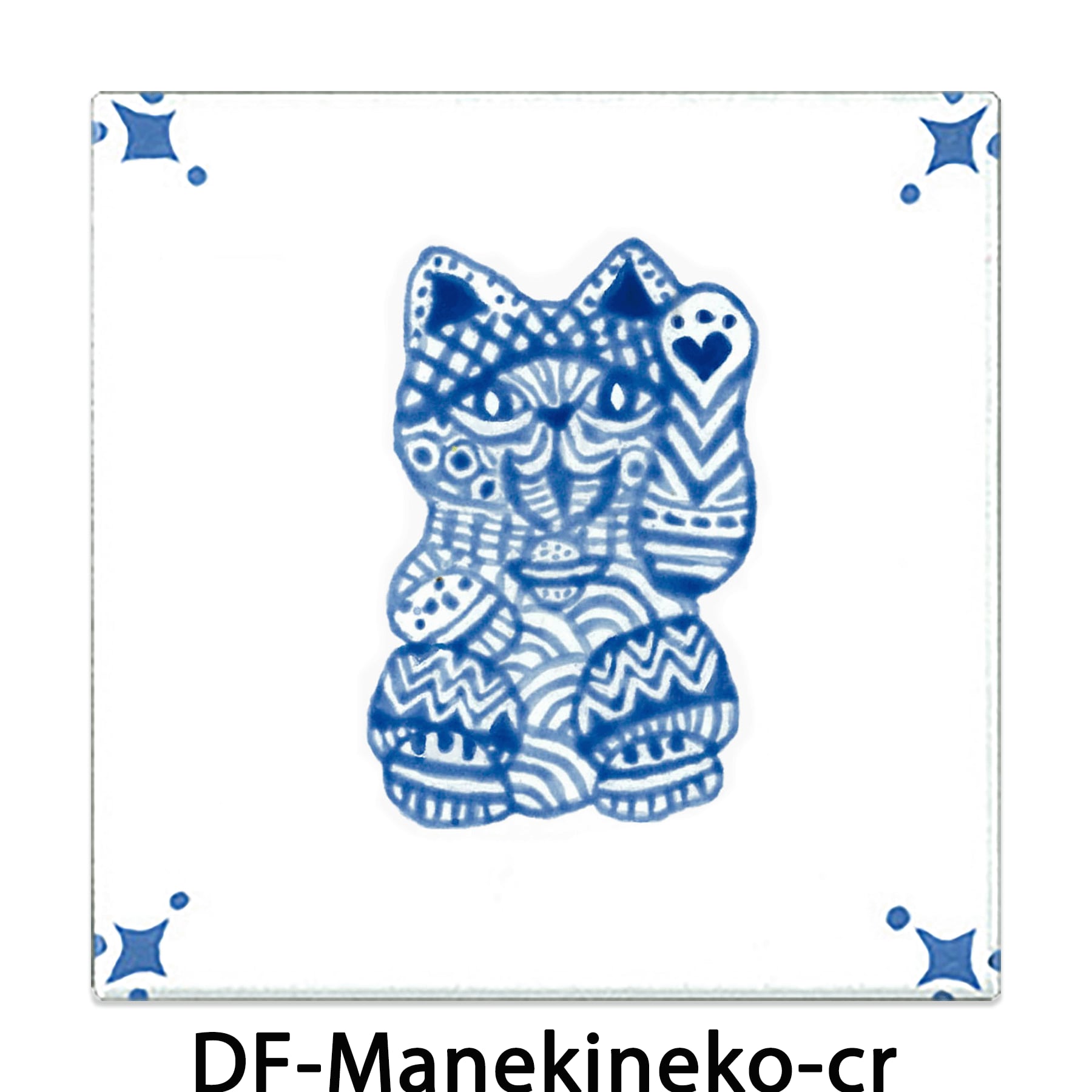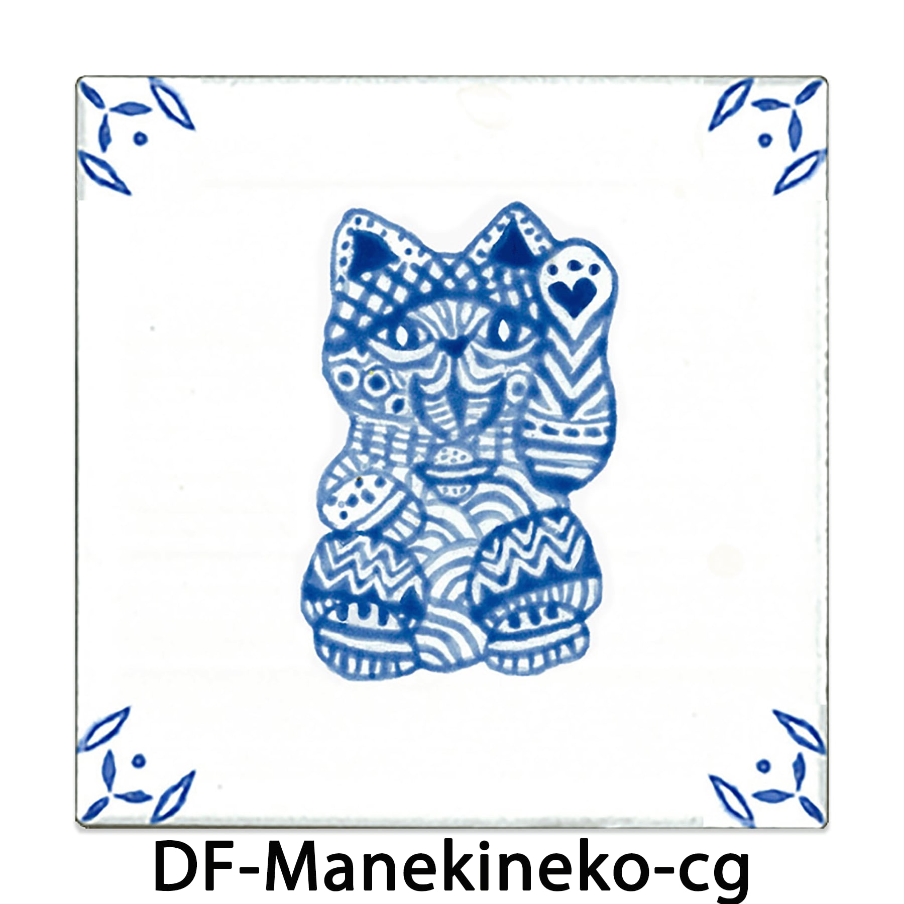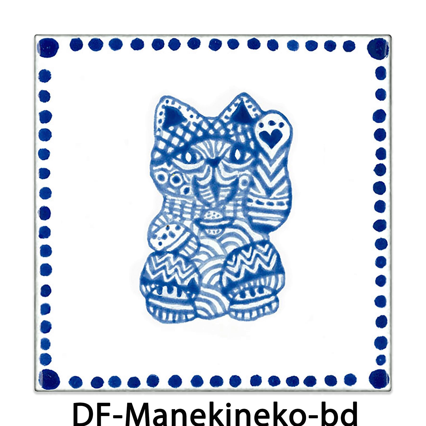 MANEKINEKO -まねき猫【100×100mm】幸福を願うまねき猫をデザインしたデルフト調タイルです。