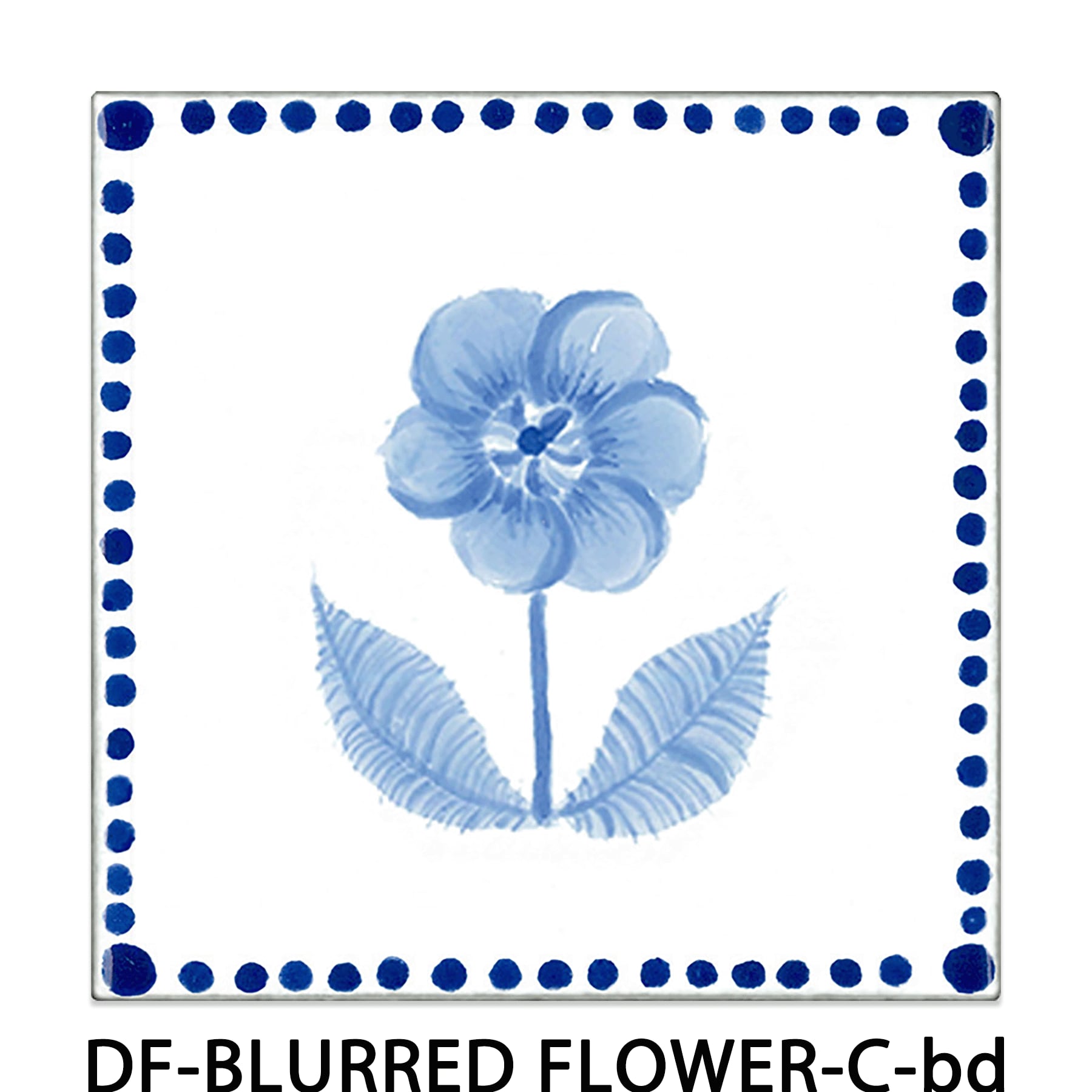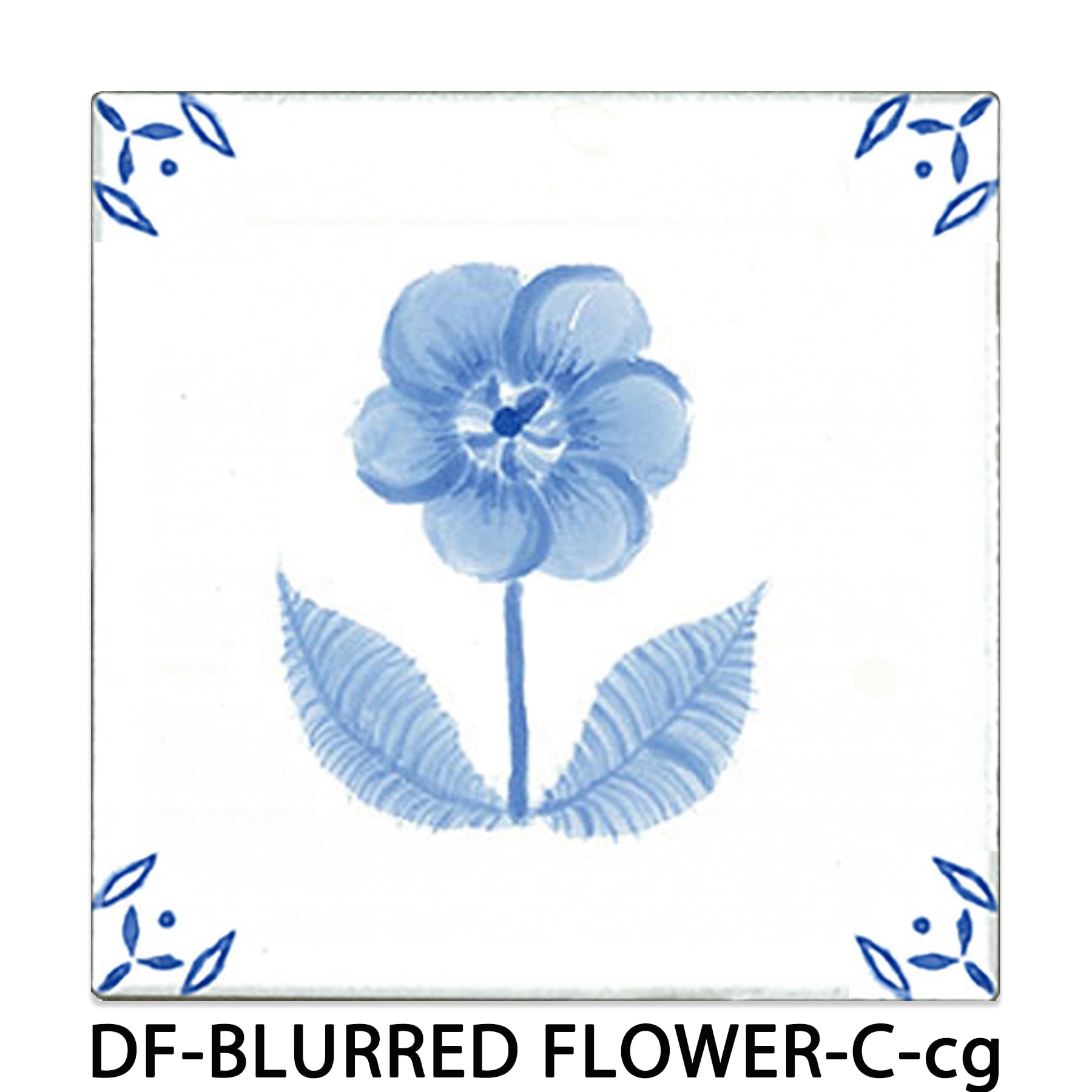 BLURRED FLOWER-C -ぼかし花【100×100mm】青の微妙な濃淡を施した墨絵調の花をデザインしたデルフト調のタイルです。