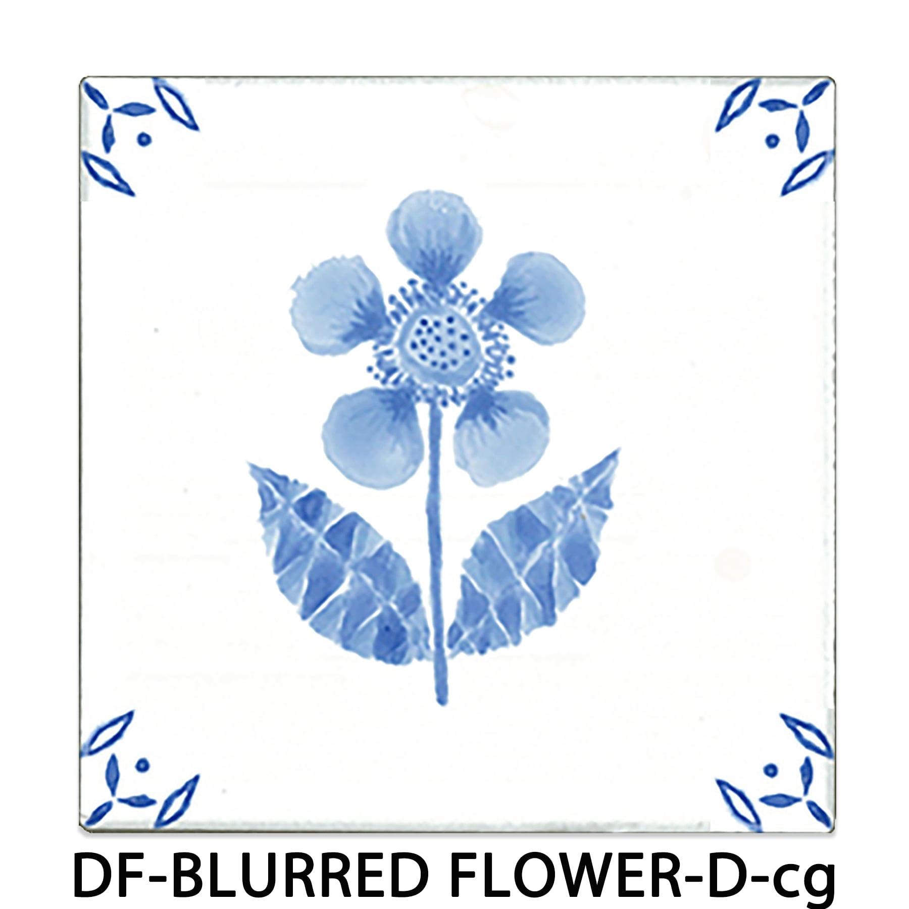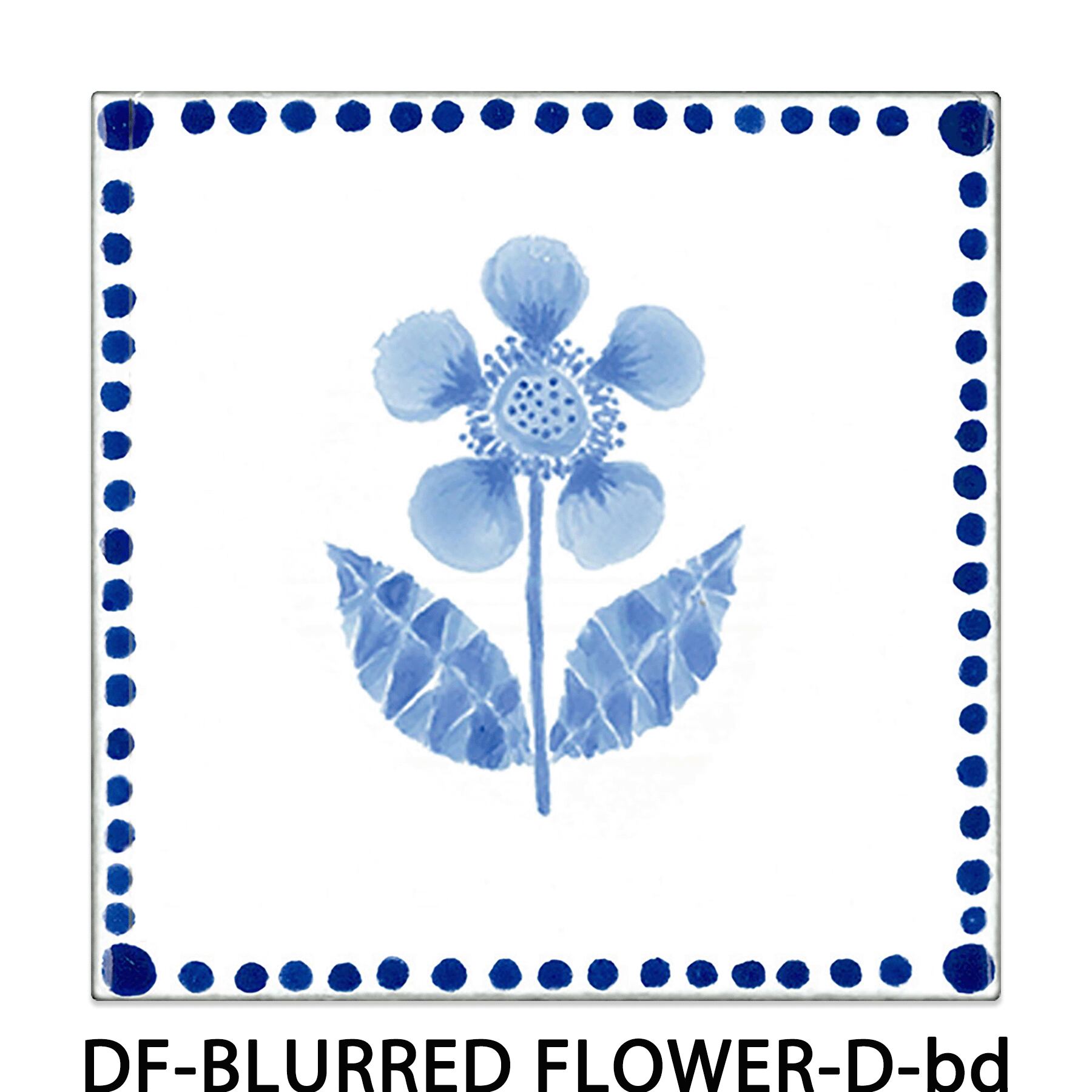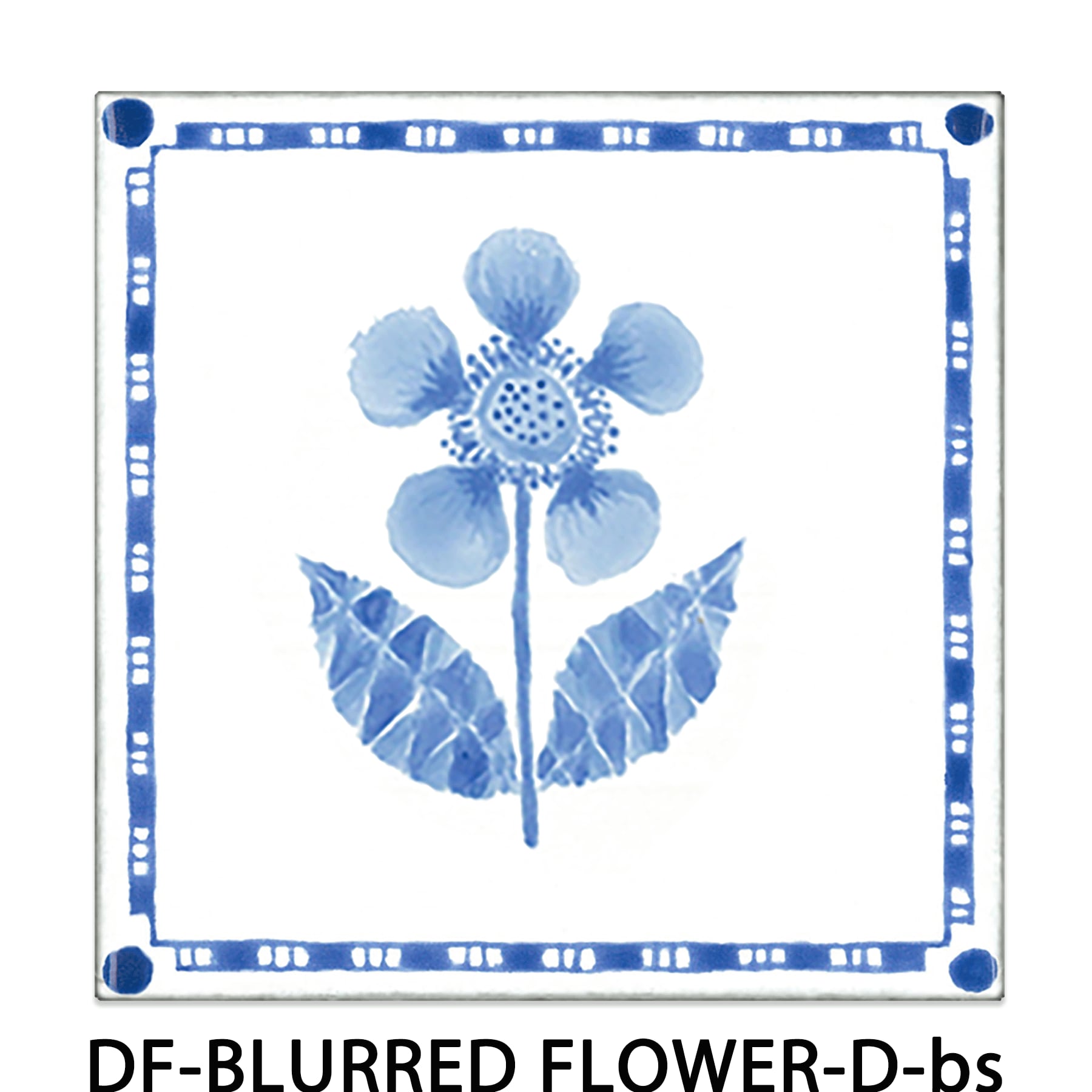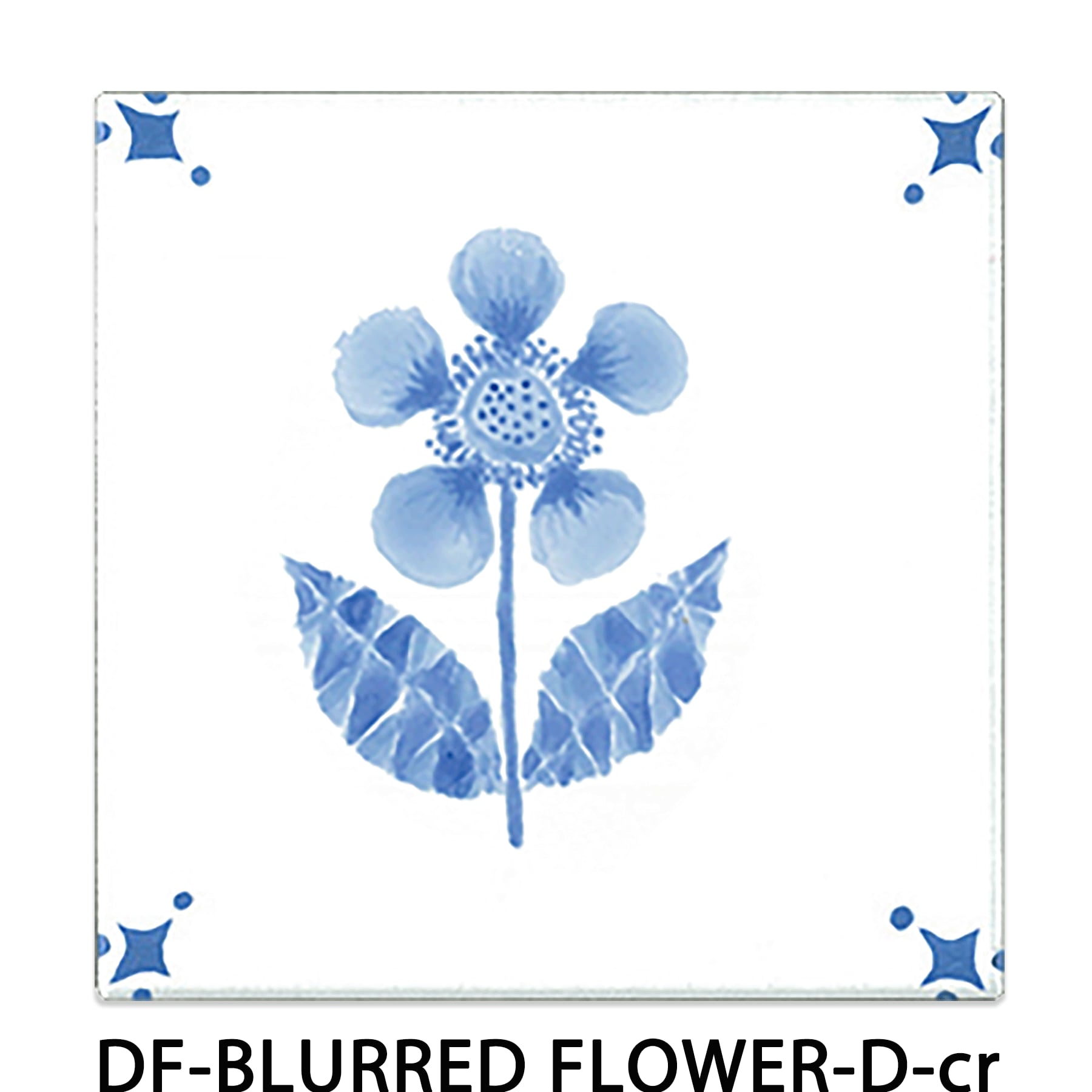 BLURRED FLOWER-D -ぼかし花【100×100mm】青の微妙な濃淡を施した墨絵調の花をデザインしたデルフト調のタイルです。