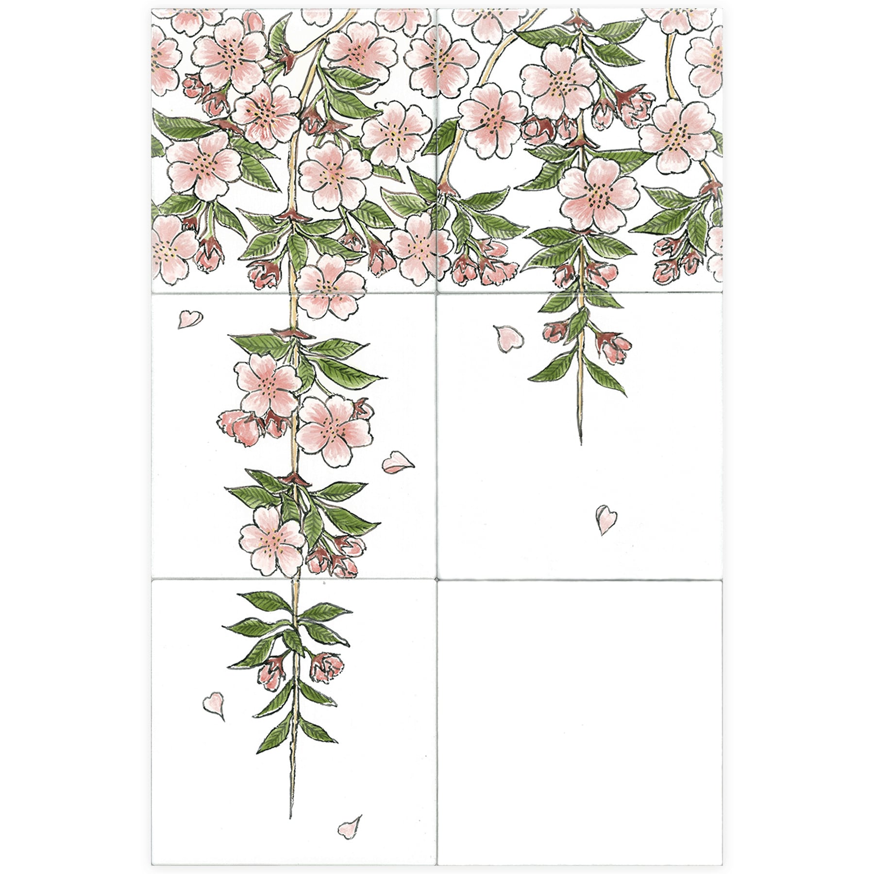 SAKURA -桜【200×300mm】軽やかなパターン模様にした優美なしだれ桜のタイルです。