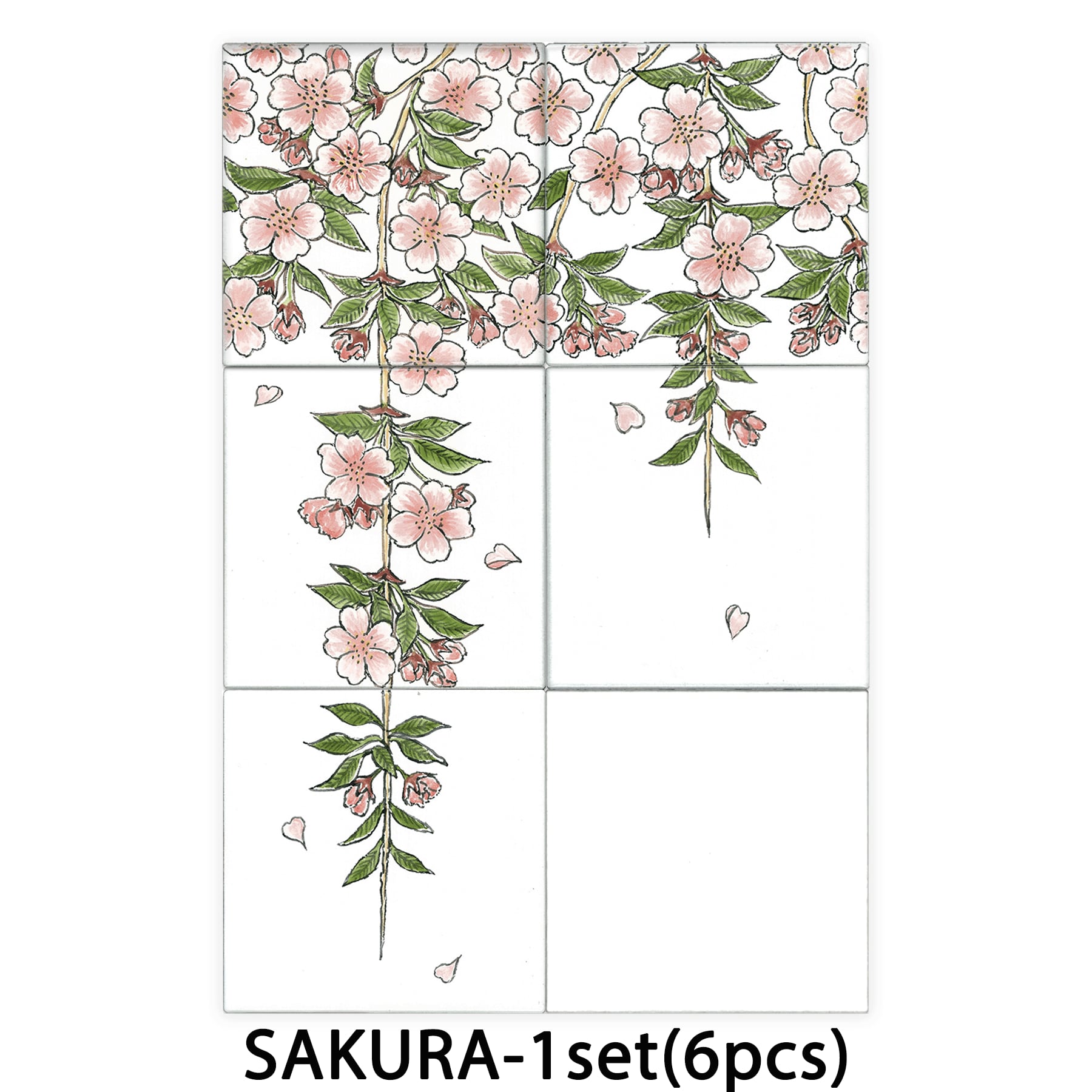 SAKURAは、優美なしだれ桜を軽やかにデザインしたタイルです。1ユニットは、6枚のタイルで構成されています。繰り返すことにより桜に包まれるような空間を演出します。淡い色合いと繊細な柄が特徴で、リビングやダイニングの内装はもちろん、店舗の装飾にも最適です。